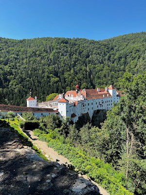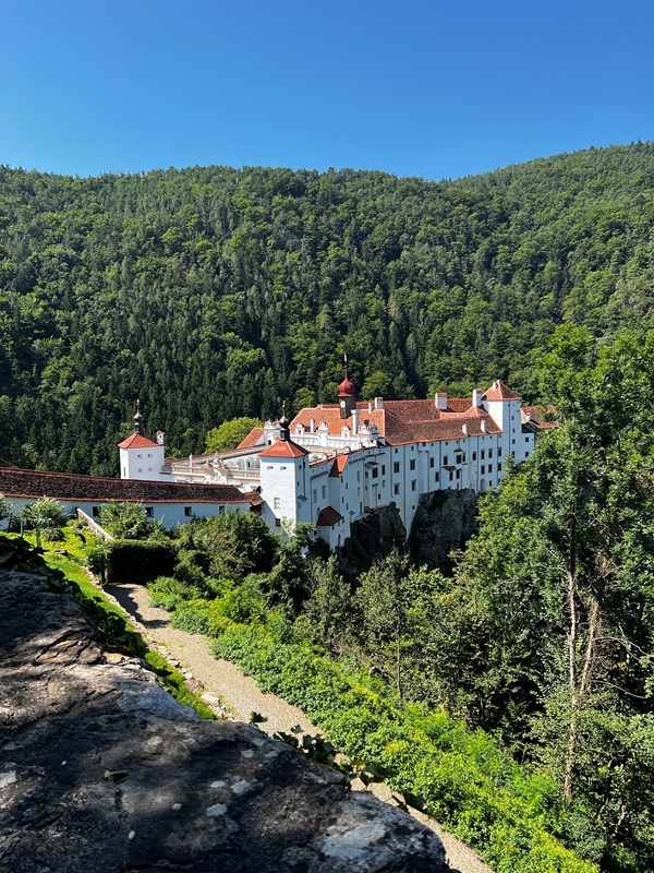 zurück Schloss Herberstein Versteckt im Hügelland der Oststeiermark liegt das Gartenschloss Herberstein Buchberg 1 8222 St. Johann bei Herberstein Österreich Homepage: https://herberstein.co.at Geschichte, Natur und tierische BegegnungenVersteckt in einem idyllischen Seitental der Oststeiermark erhebt sich Schloss Herberstein majestätisch über der Feistritzklamm. Seit über 700 Jahren im Besitz der Familie Herberstein, verbindet das Anwesen auf eindrucksvolle Weise Geschichte, Kultur und Natur.Das Schloss selbst ist ein architektonisches Juwel: Eine spannende Mischung aus Gotik, Renaissance und Barock, eingebettet in eine herrliche Gartenanlage. Besucher können bei Führungen in die Welt vergangener Jahrhunderte eintauchen und originale Möbel, Kunstwerke und die spannende Familiengeschichte der Herbersteins entdecken.Ein besonderes Highlight ist der angrenzende Tierpark Herberstein, einer der ältesten und beliebtesten Zoos Österreichs. Hier leben rund 85 Tierarten aus fünf Kontinenten – darunter Geparden, Zebras, Löwen und viele mehr – in großzügigen, naturnahen Gehegen. Der Tierpark legt großen Wert auf Artenschutz und Umweltbildung und begeistert Besucher aller Altersgruppen. Anfahrtsskizze zurück Karte ausblenden Karte vergrößern 49